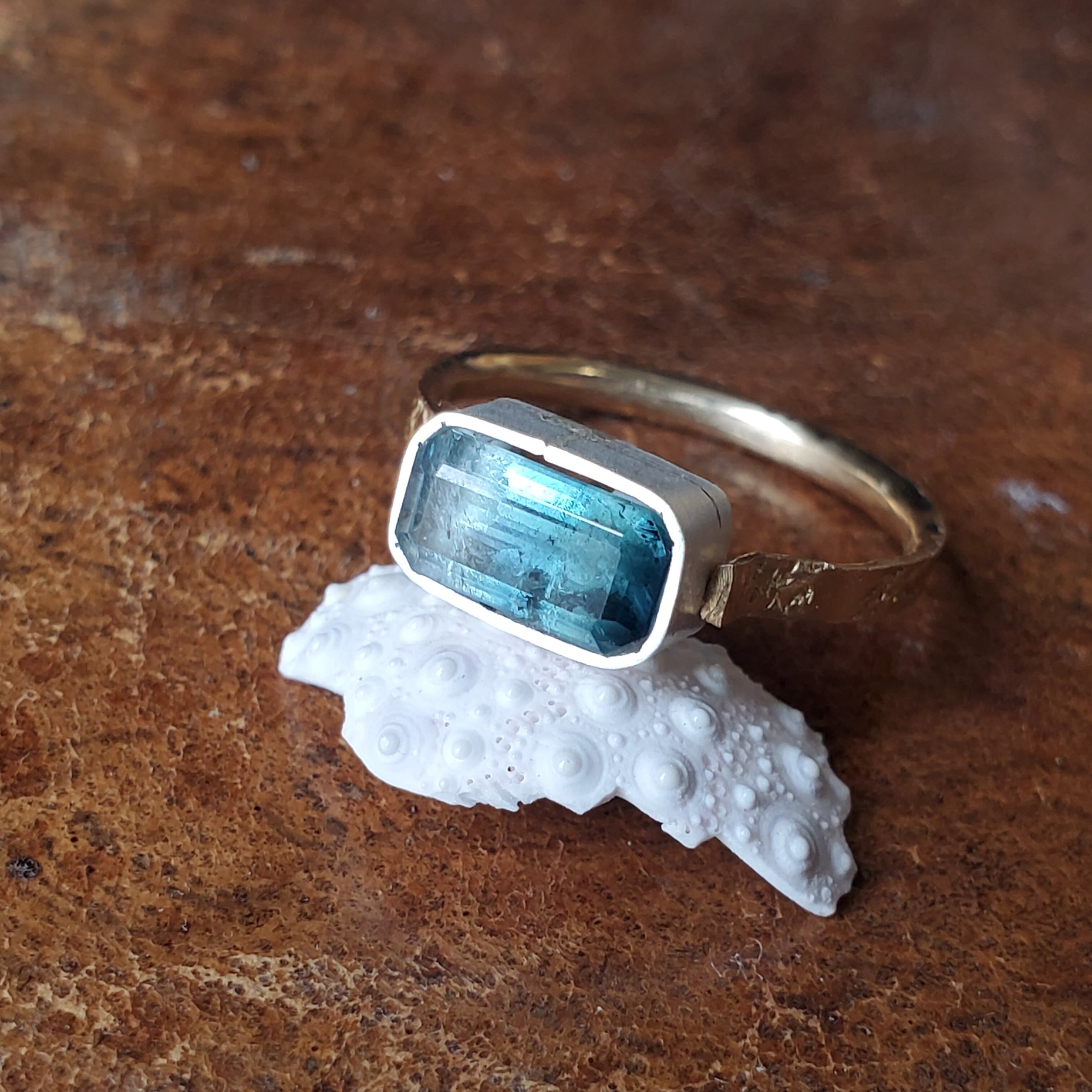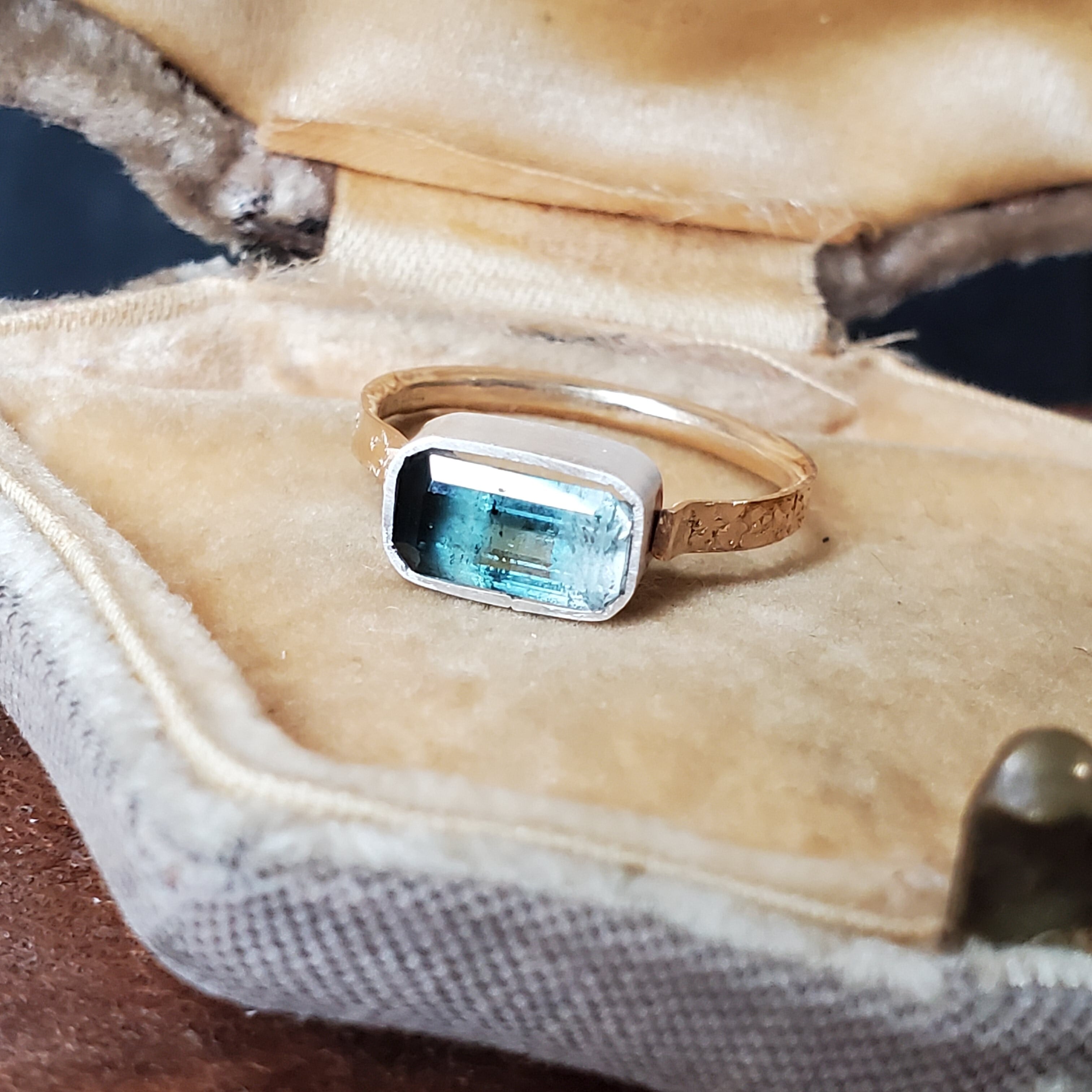 左側はクリア、中央はアイスブルー、右側はダークグリーンの複雑で美しいグラデーションが魅力です。