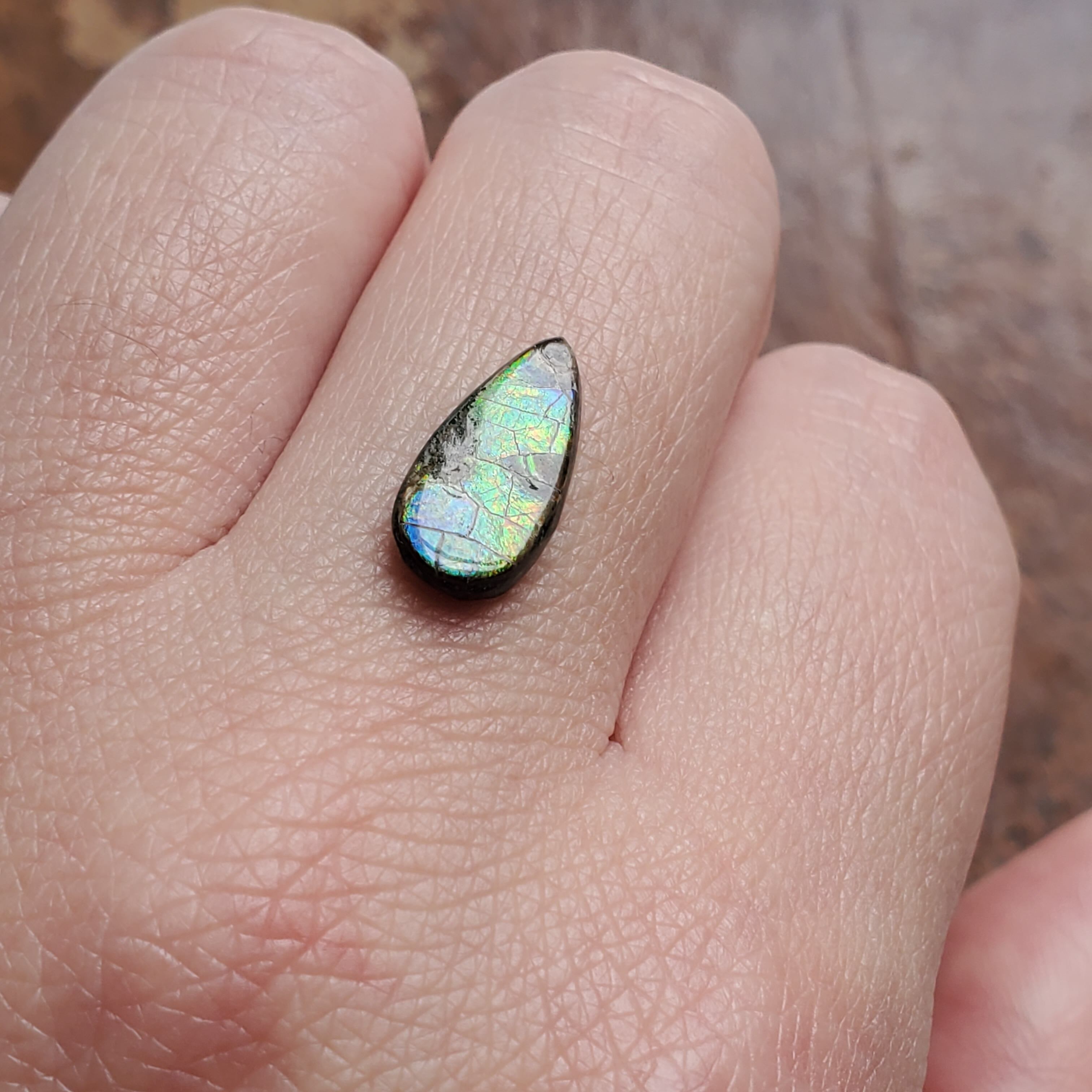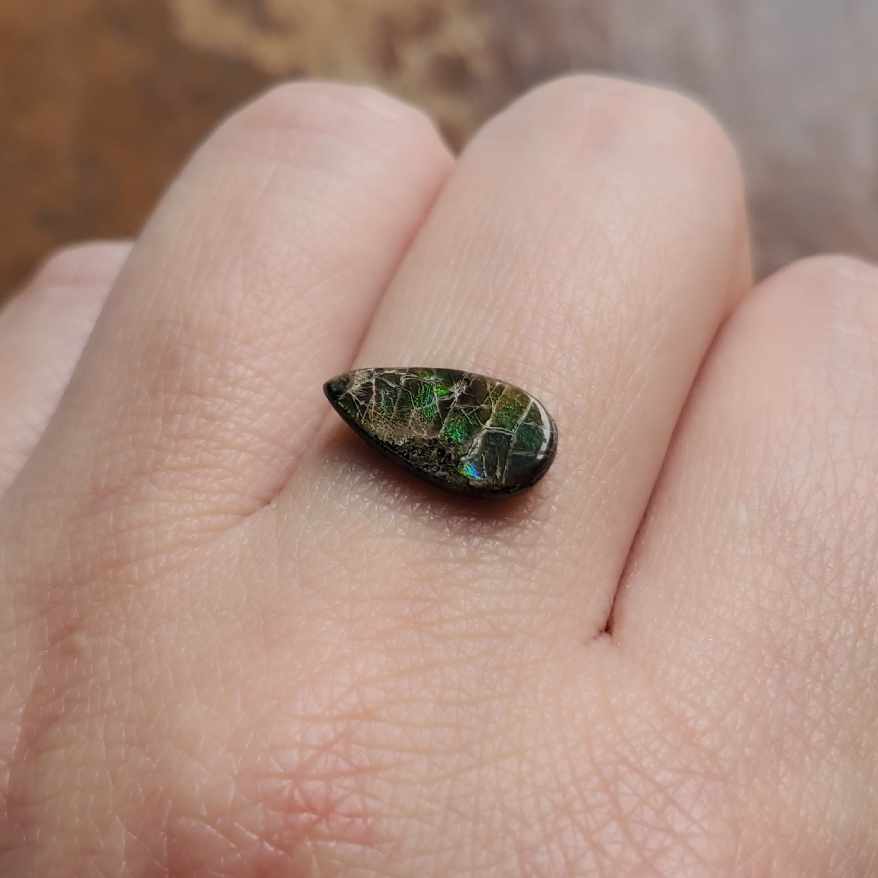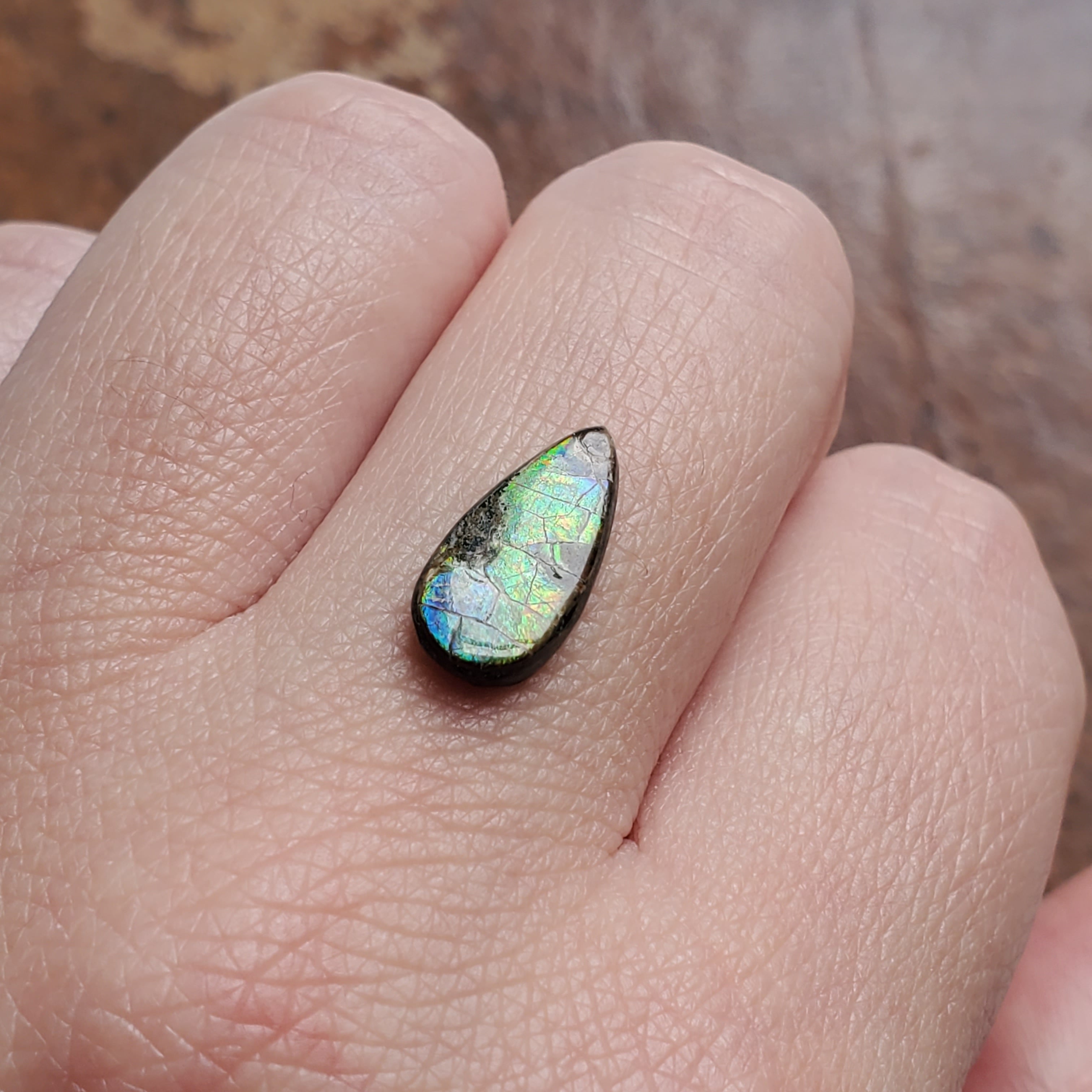 ※アンモライトの層はとても薄いので、通常として樹脂含浸による補強、裏側に別の石を貼るダブレット加工が施されています。
