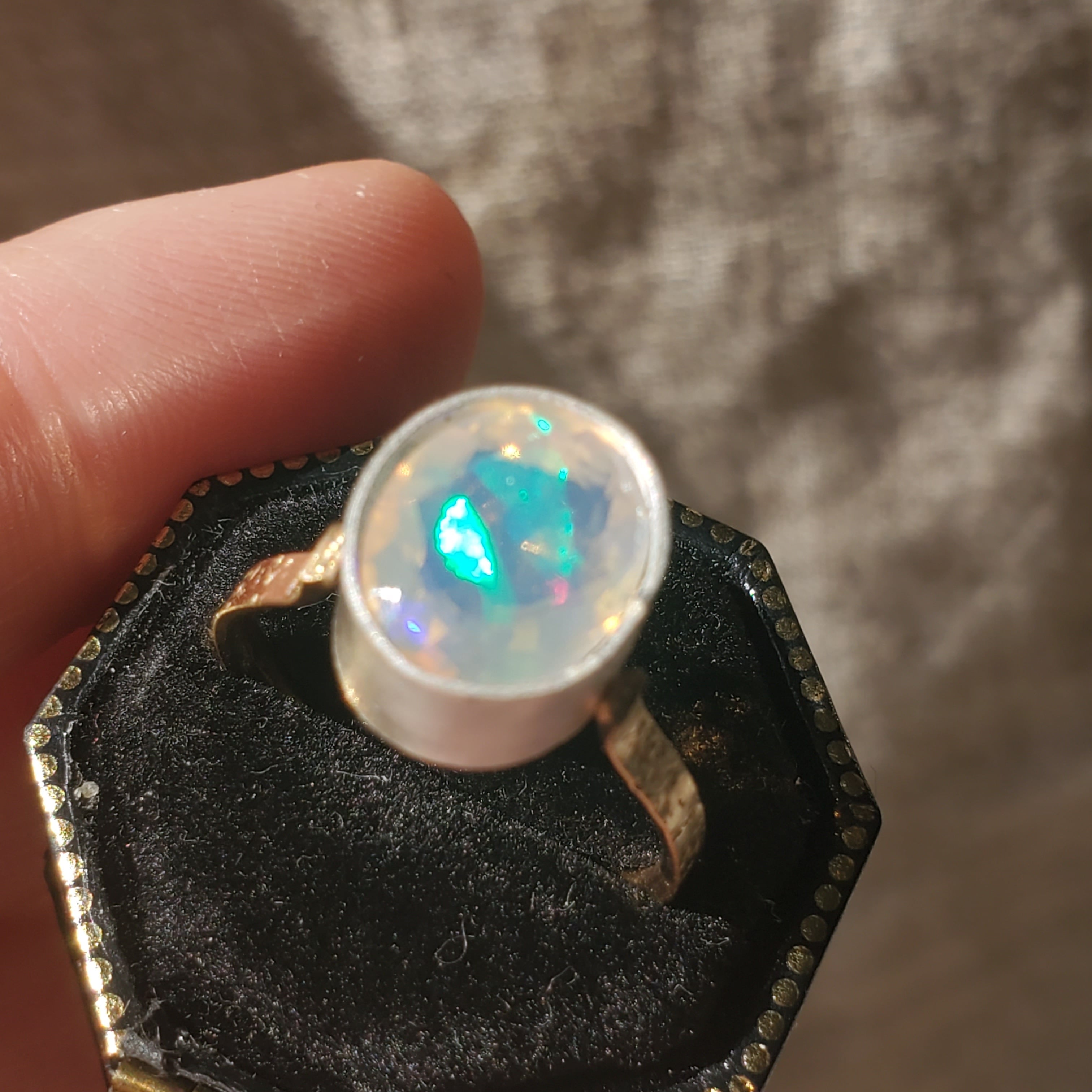 オーバル③【緑の稲妻】エチオピアオパールのリング