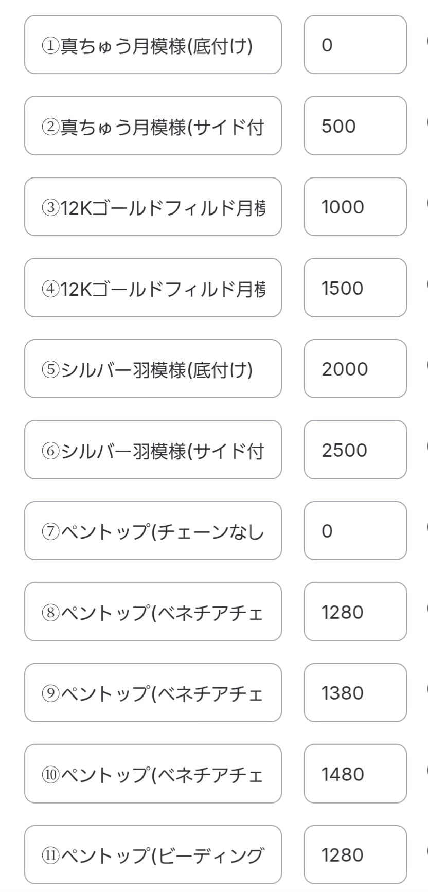 銀価格の急激な上昇により、サイズオーダー(受注製作)のアーム・チェーンのオプション価格について画像のように価格改定させて頂きます。