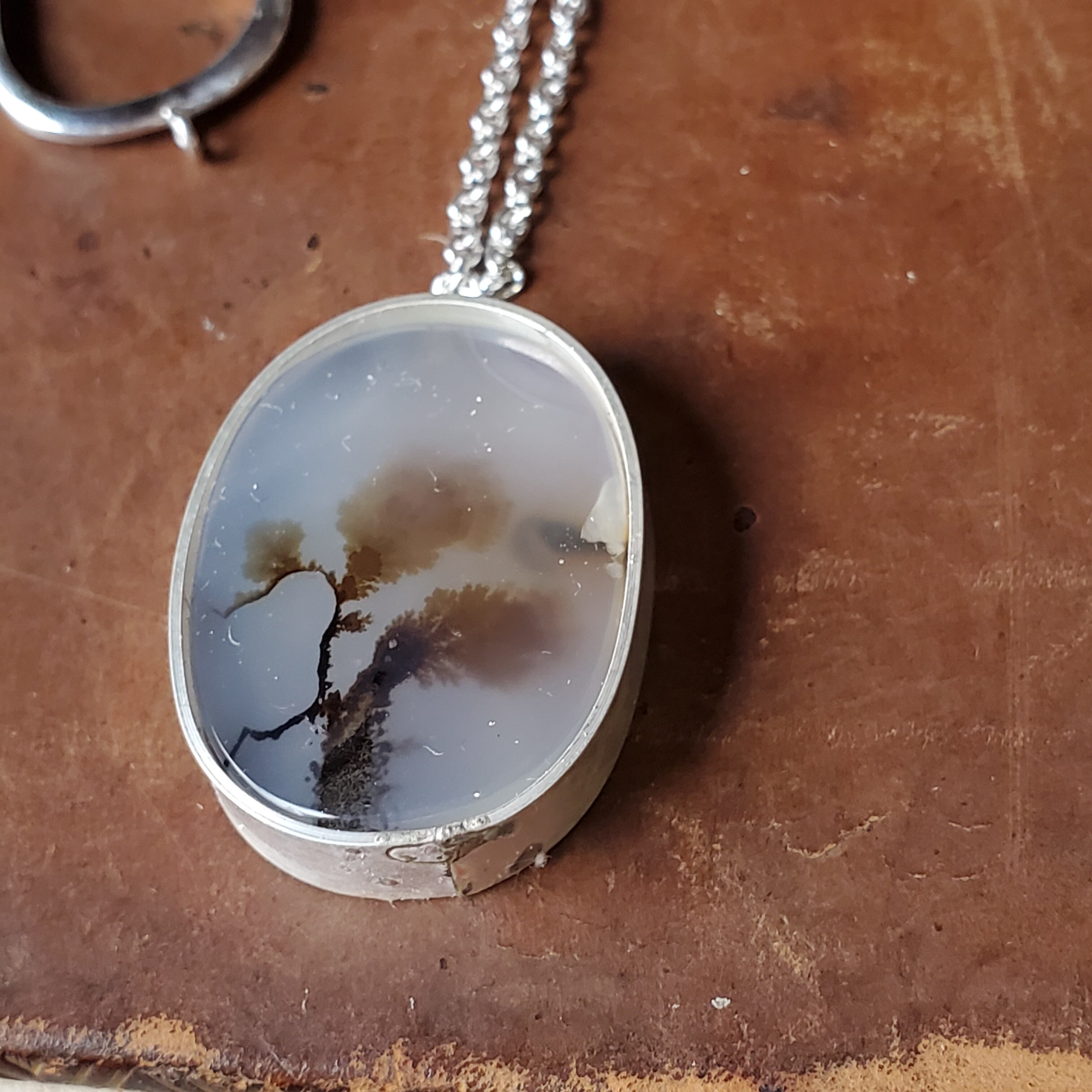 まるで植物の化石のように見えるデンドリティックアゲート。アゲートの中に長い時間をかけて鉄分などがしみ込んでいき、樹状の模様を描きます。