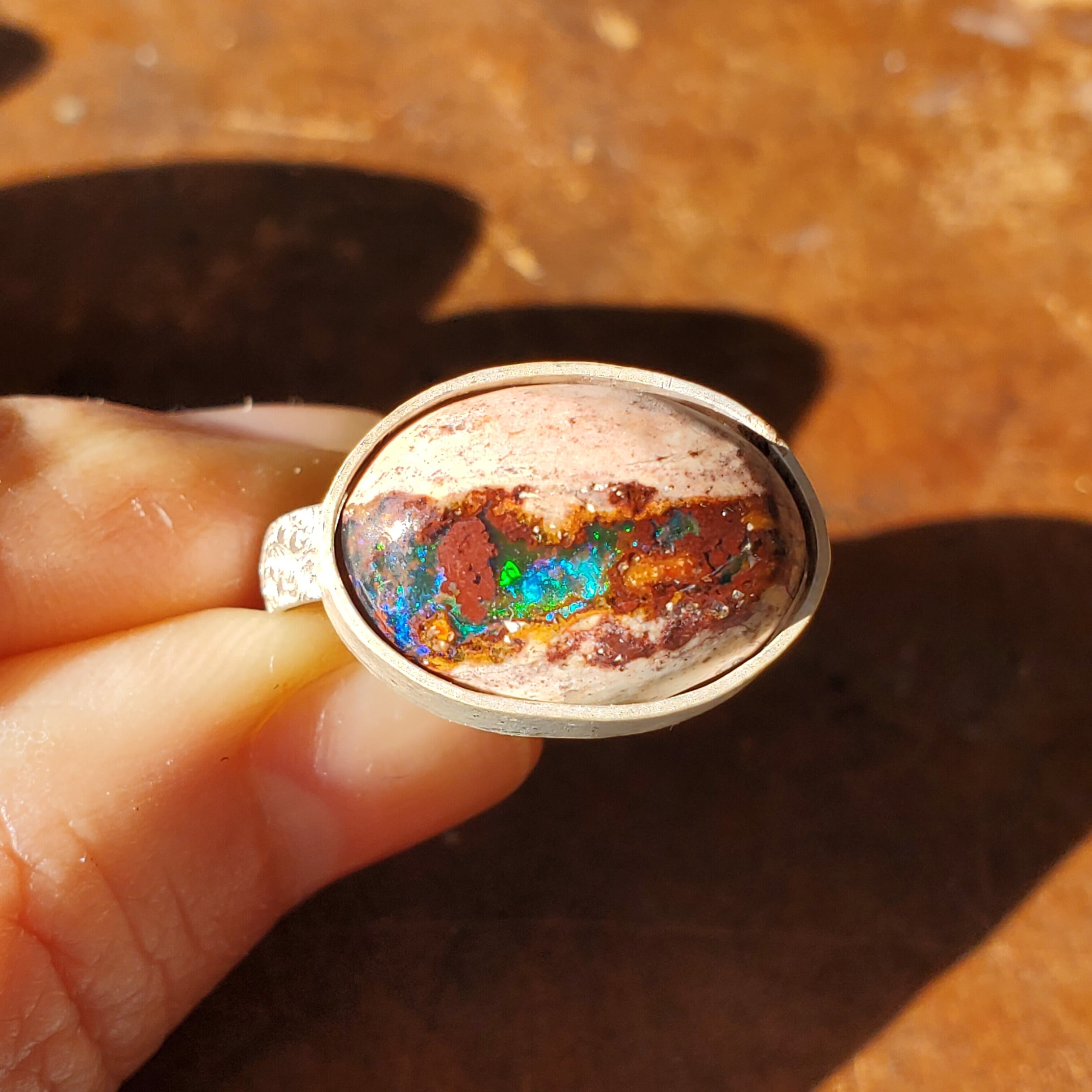 ●ベージュの母岩に縦に流れるようにオパールが入っています。