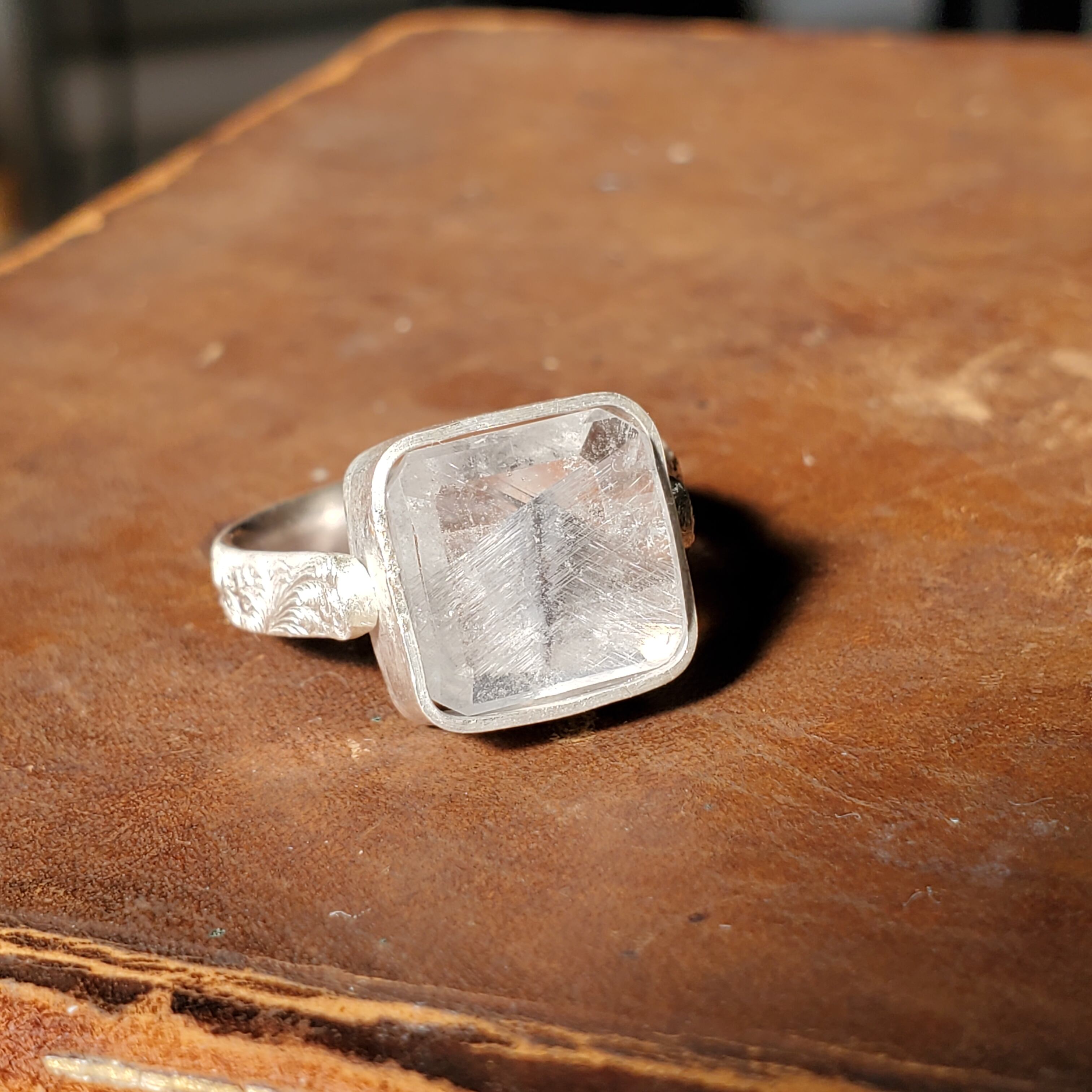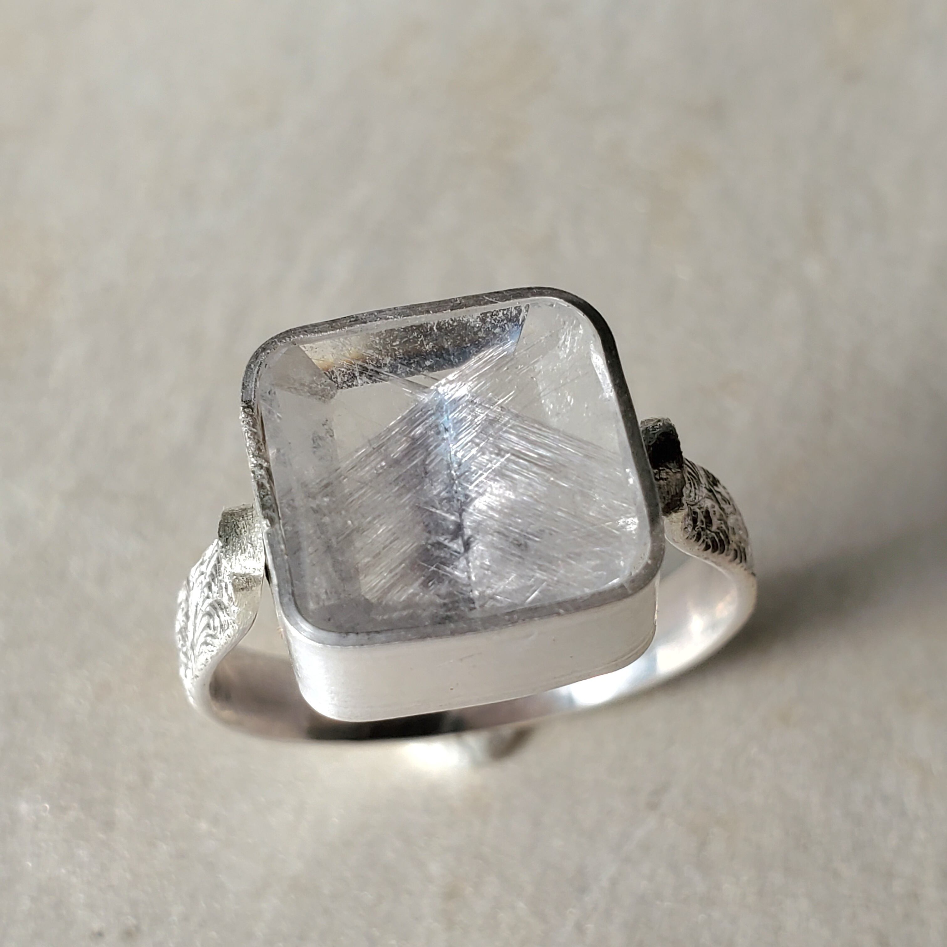 ●インクォーツ系はカボションが多くカットの入ったものは少ないですが、こちらはエメラルドカットが施されており端正な雰囲気です。