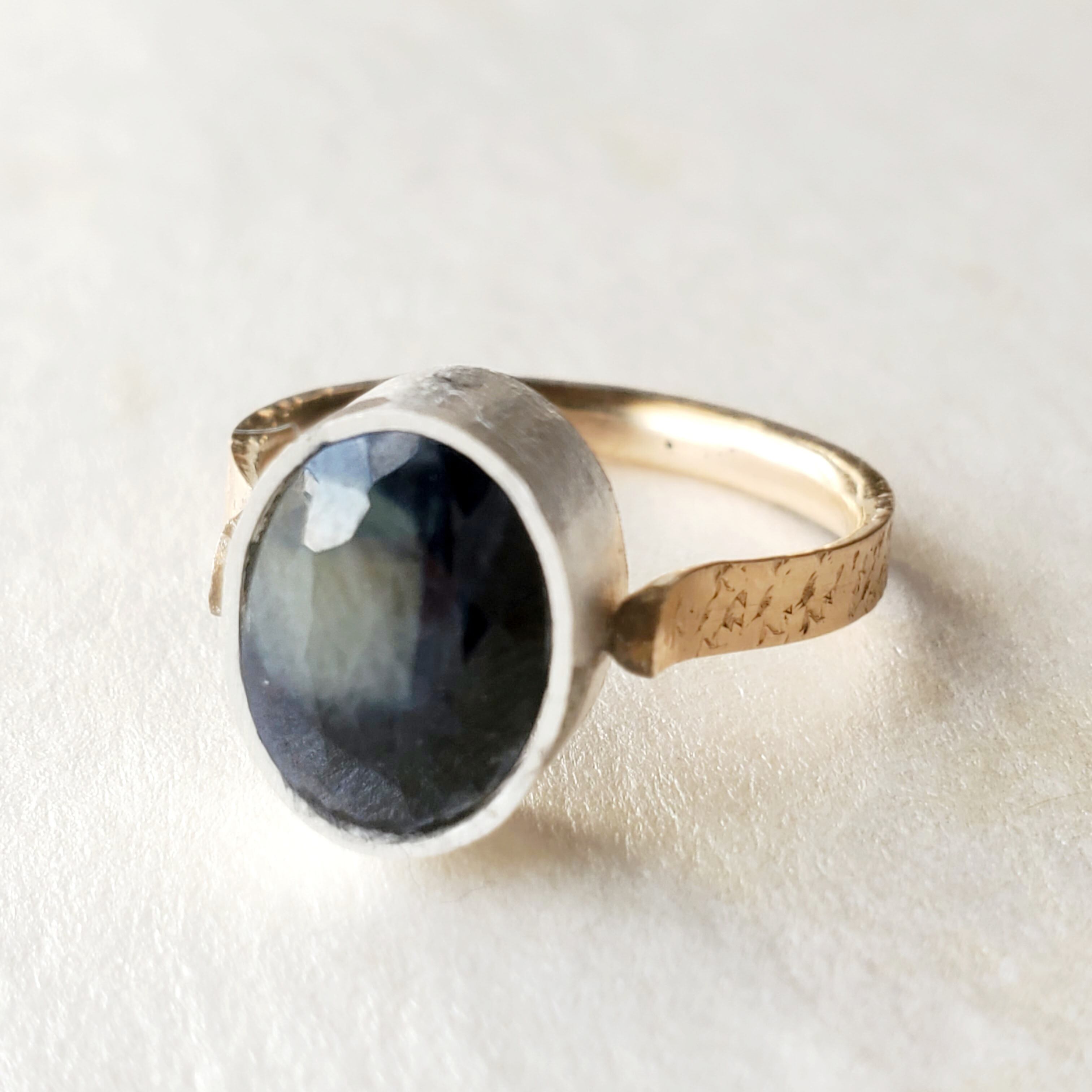 【おぼろ月】バイカラーサファイアのリング