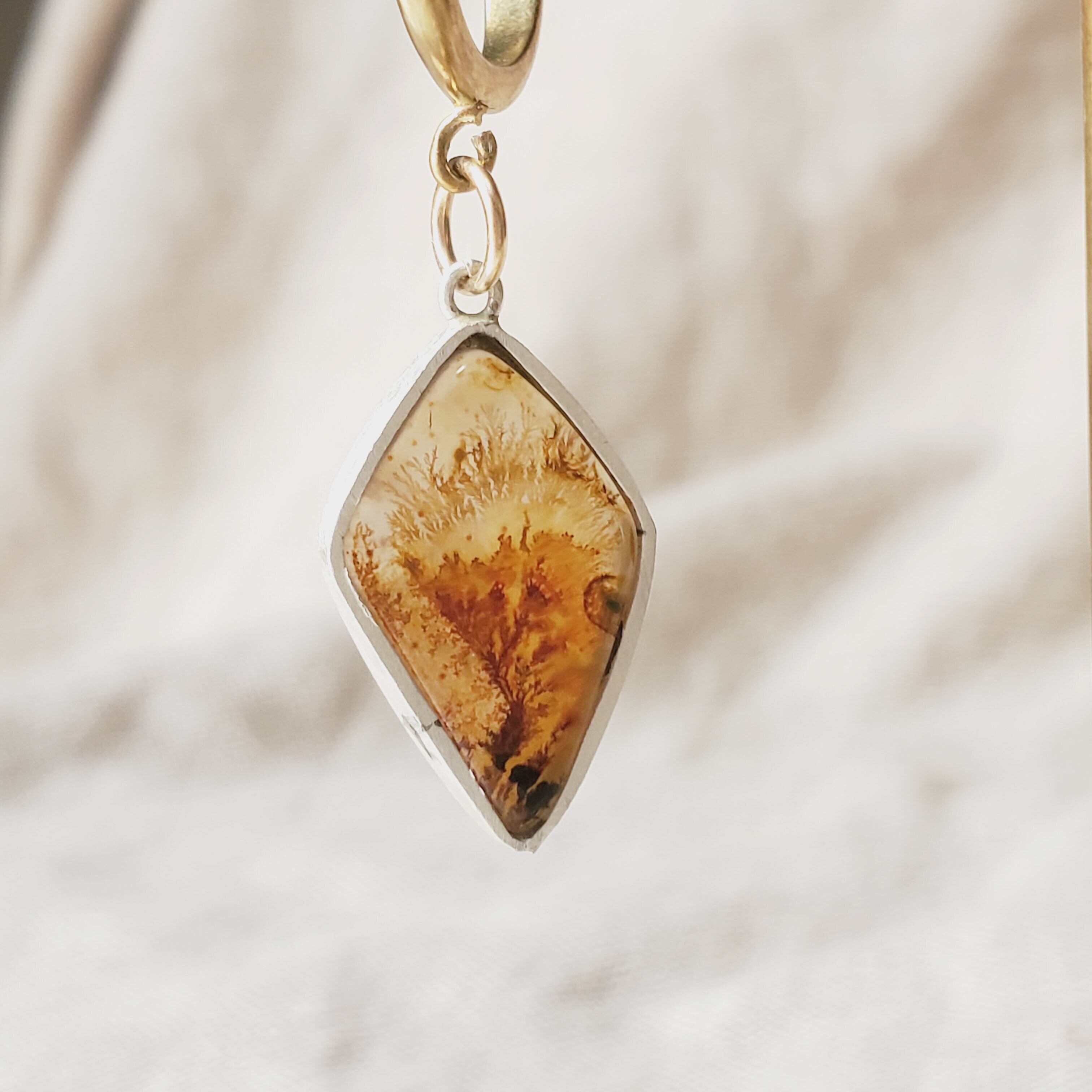 下から花が咲くように茶色のインクルージョンが広がっています 光に透かすと絵画のような美しさが際立ちます。
