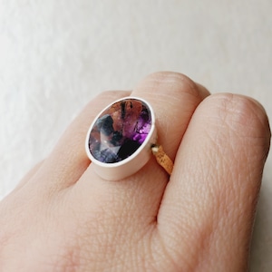ヘマタイトは隕石のよう 立体的な形をしており、ゆらゆらとしたアメジストの紫は角度によっては鮮やかな色彩を見せます。