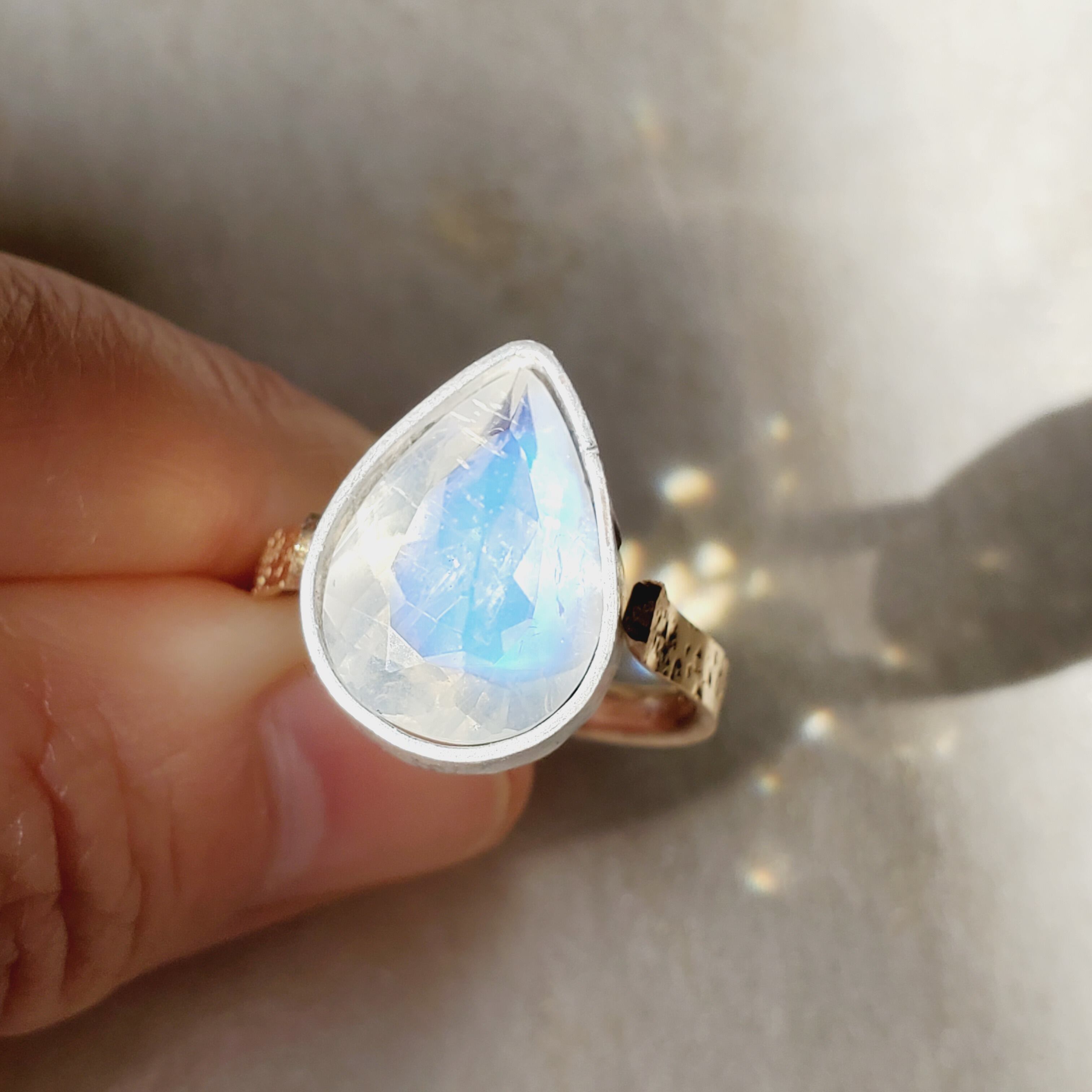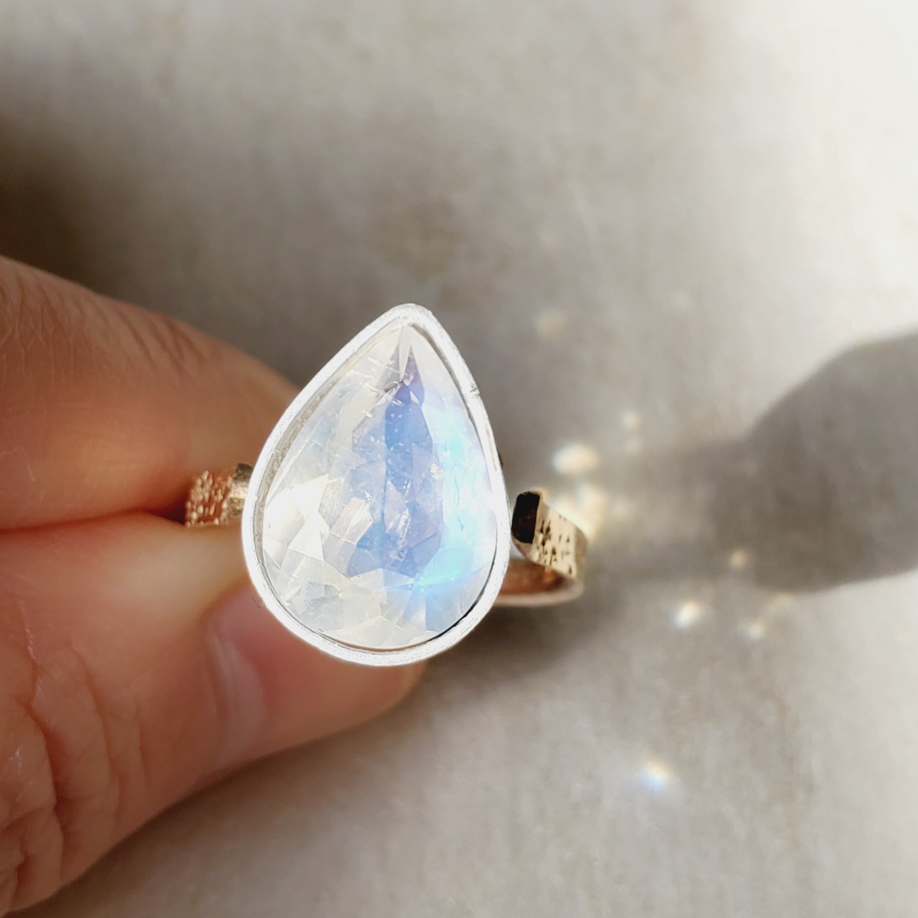 石の中面にクラックや細かい白濁もありますが、ミルキーな感じに見えていいと思います。