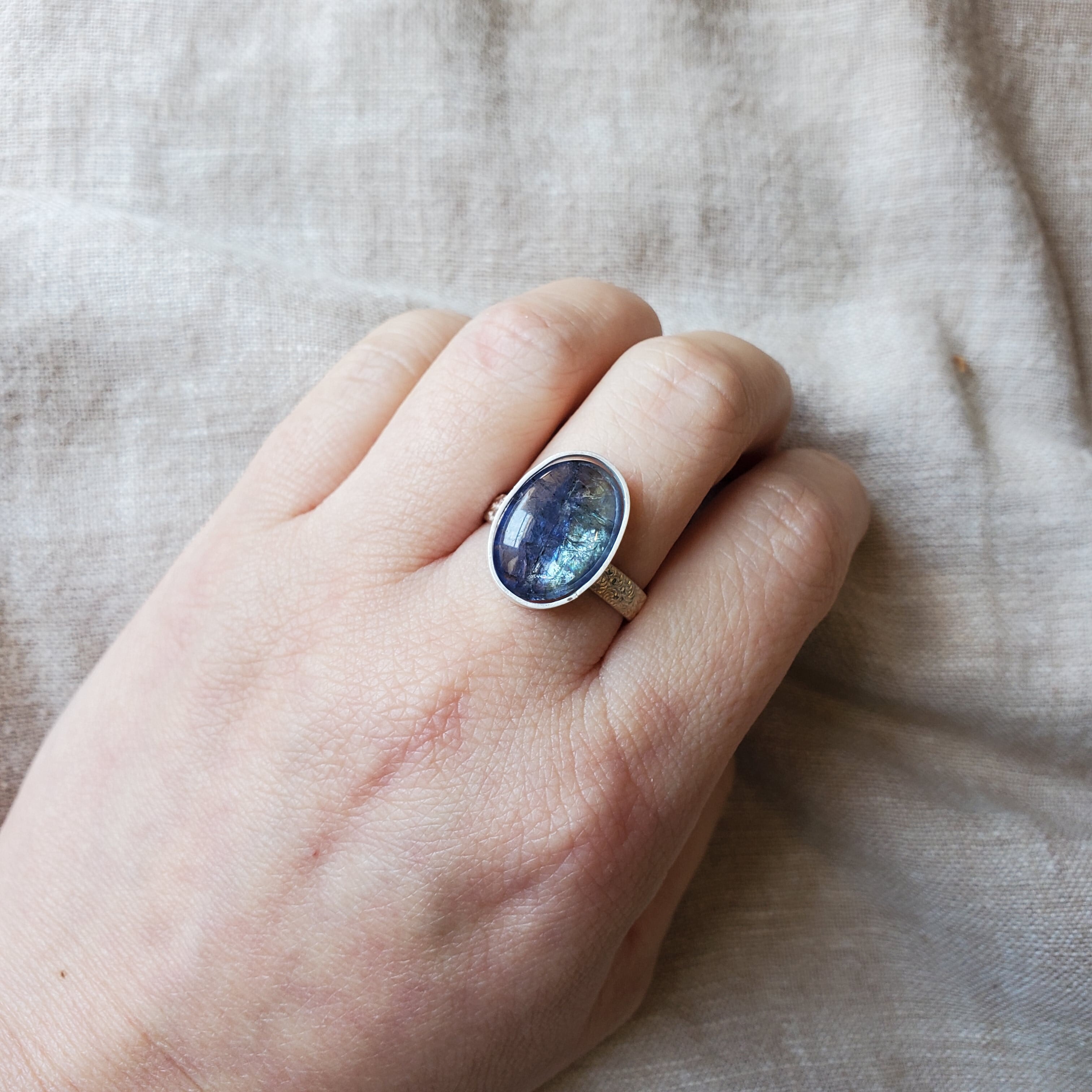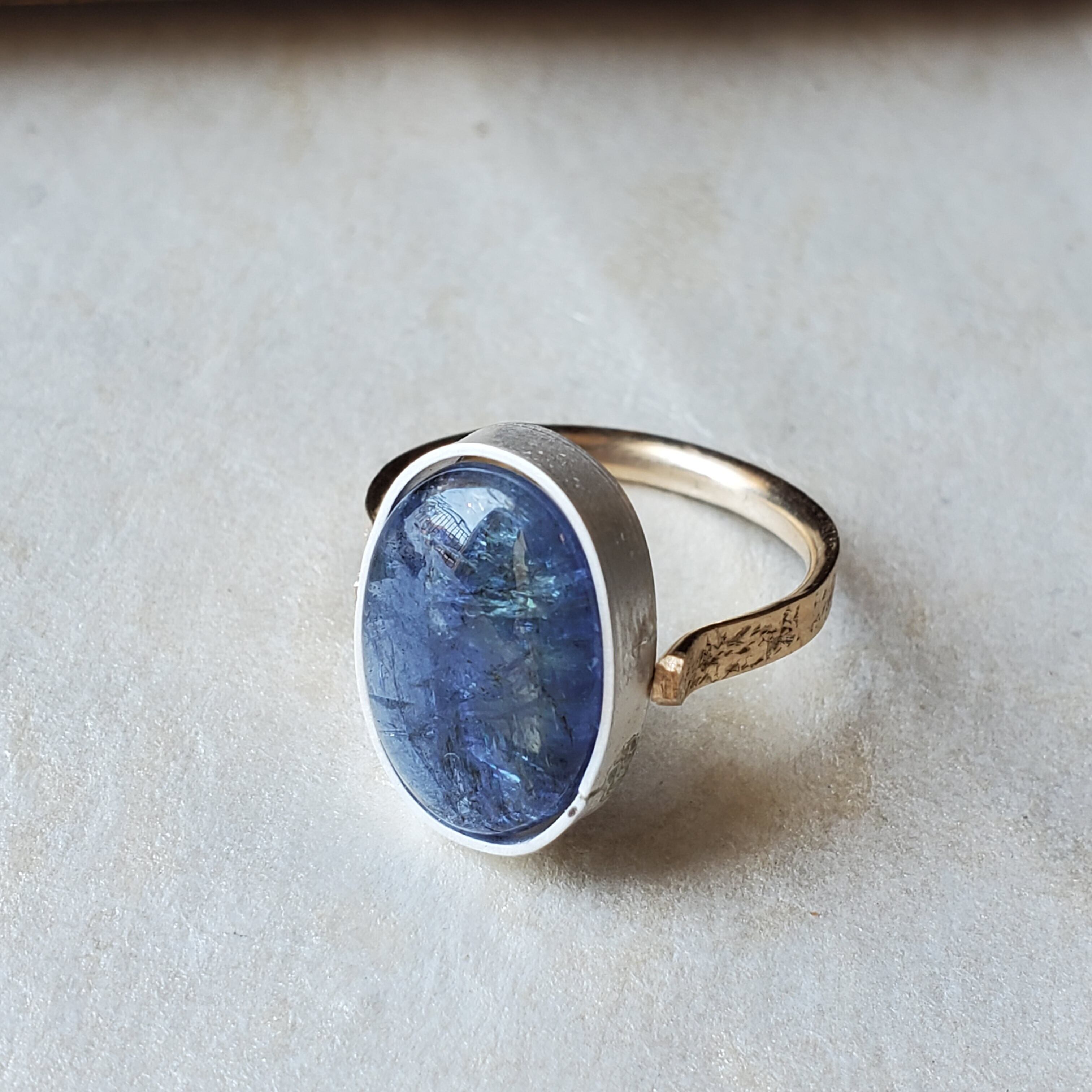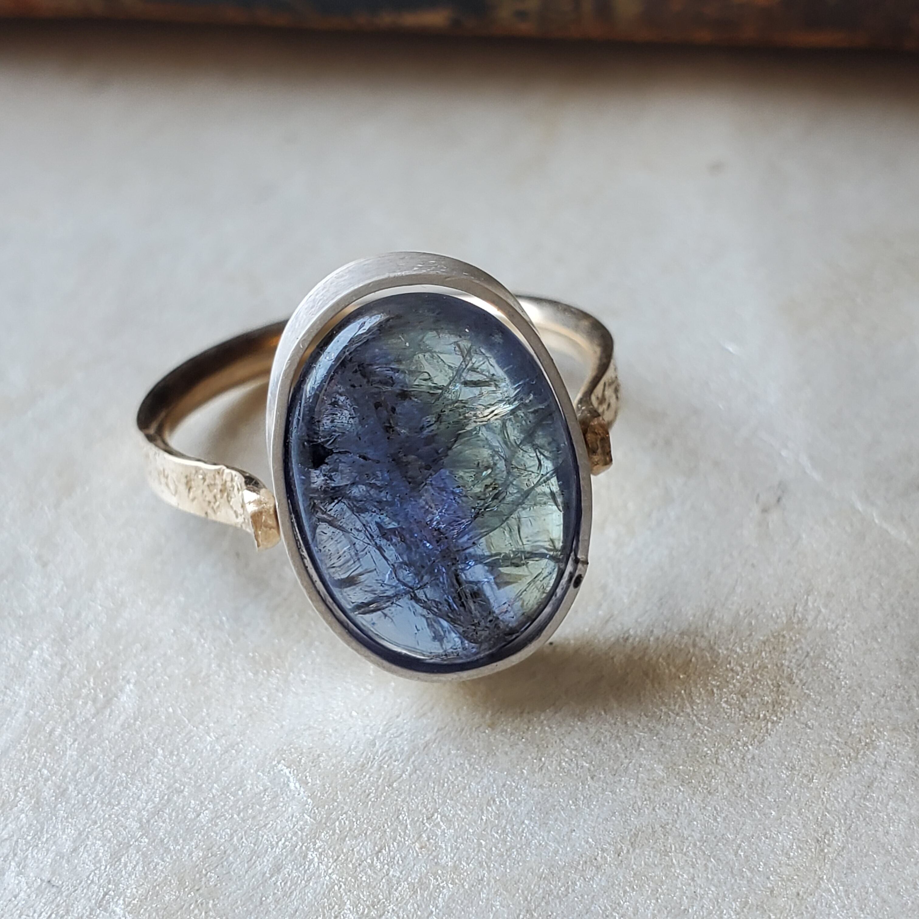 クラックが多めの野生のタンザナイトですが、光があたるとシルバーのシラーのような輝き方をします。
