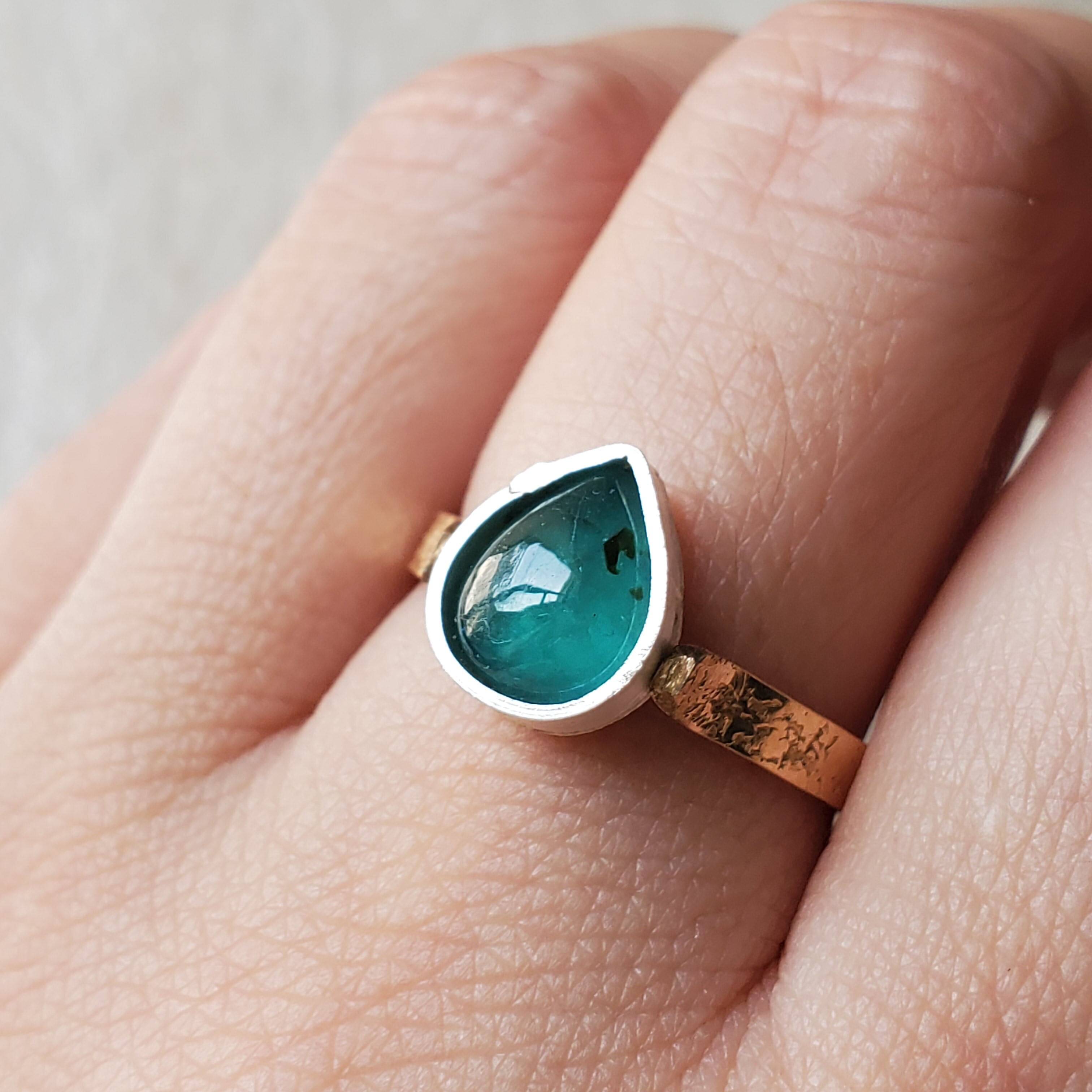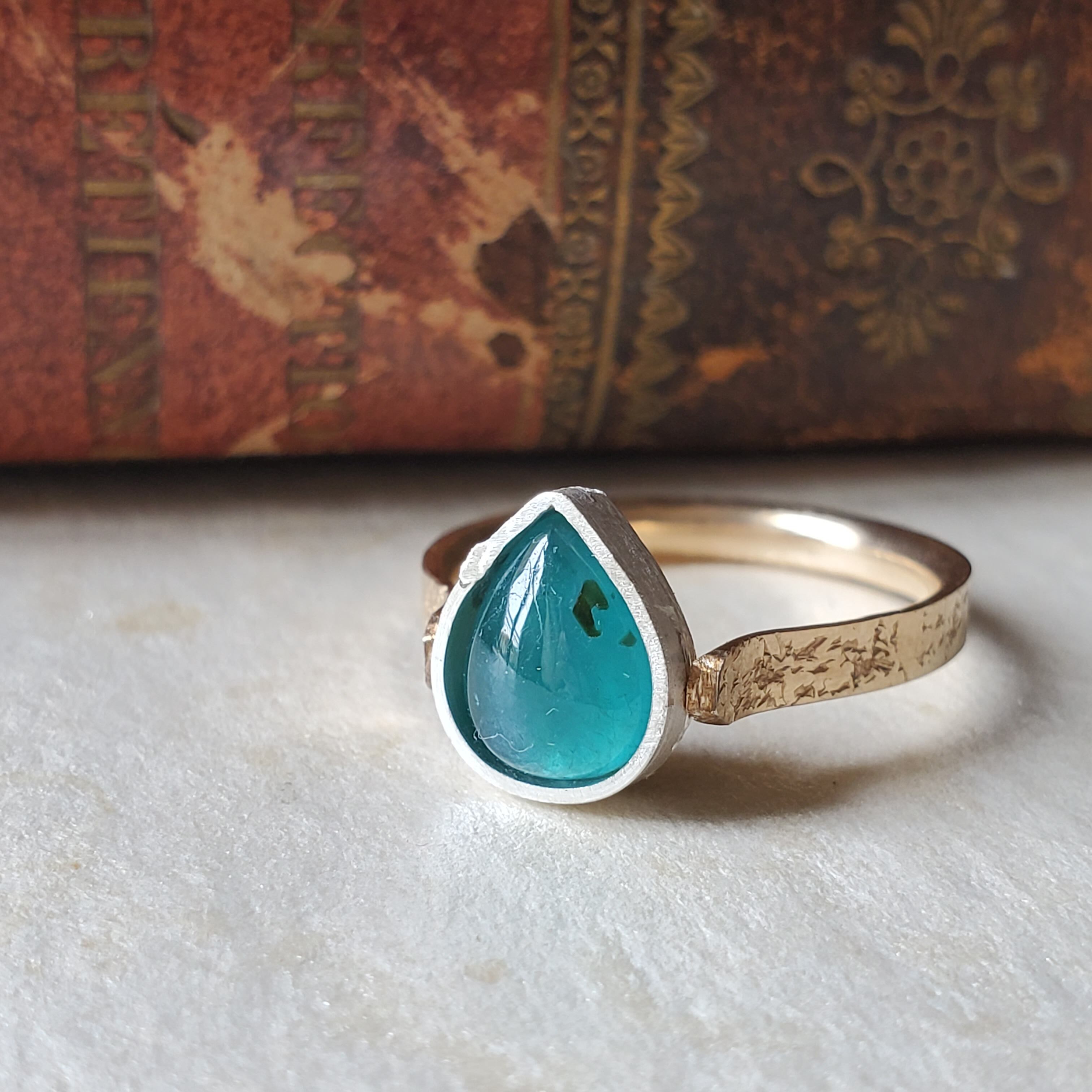 グランディディエライトの特徴は海のようなブルーグリーン。美しいだけではなくゆらぎや陰りをも感じさせる、独特の色合いが存分に楽しめます。