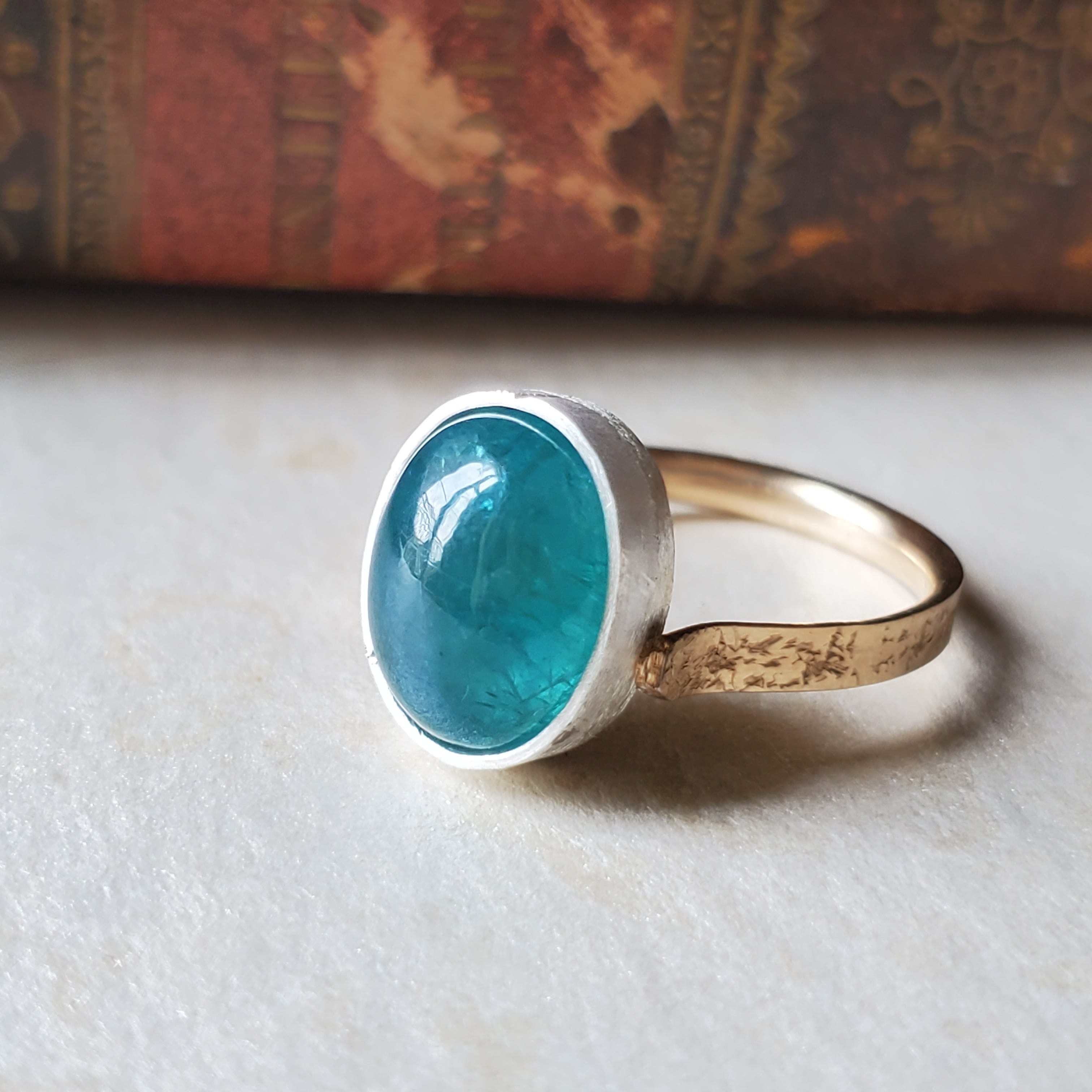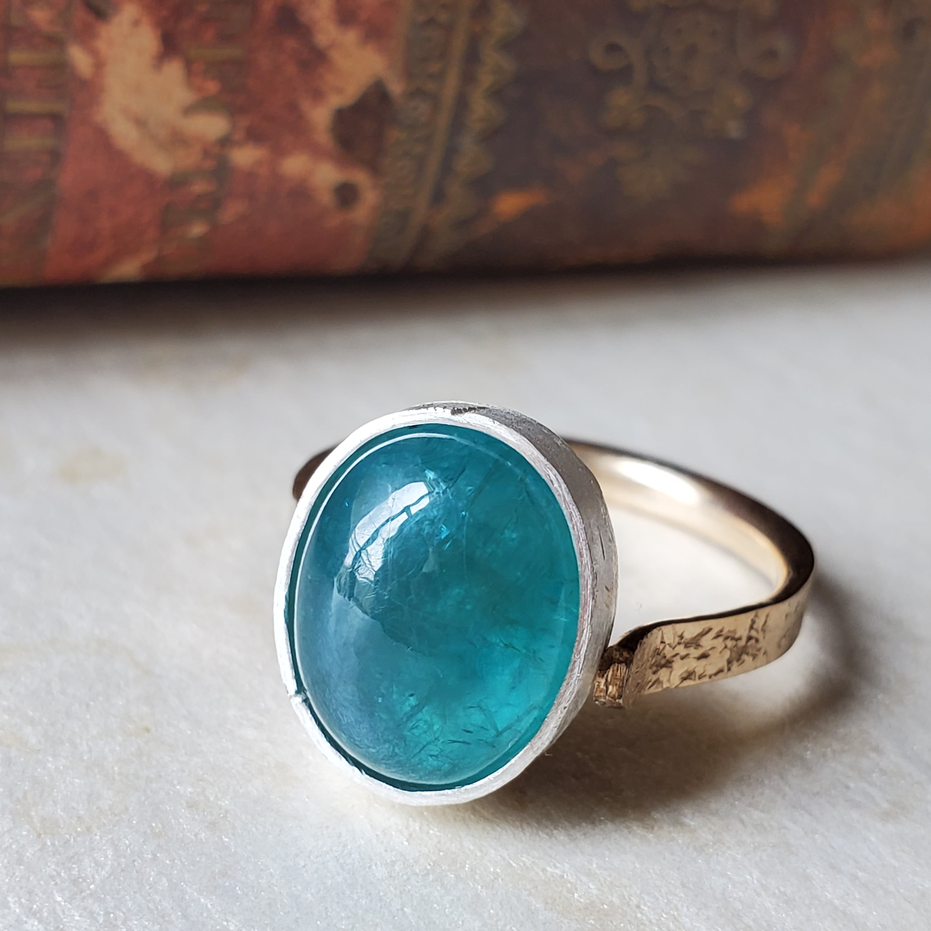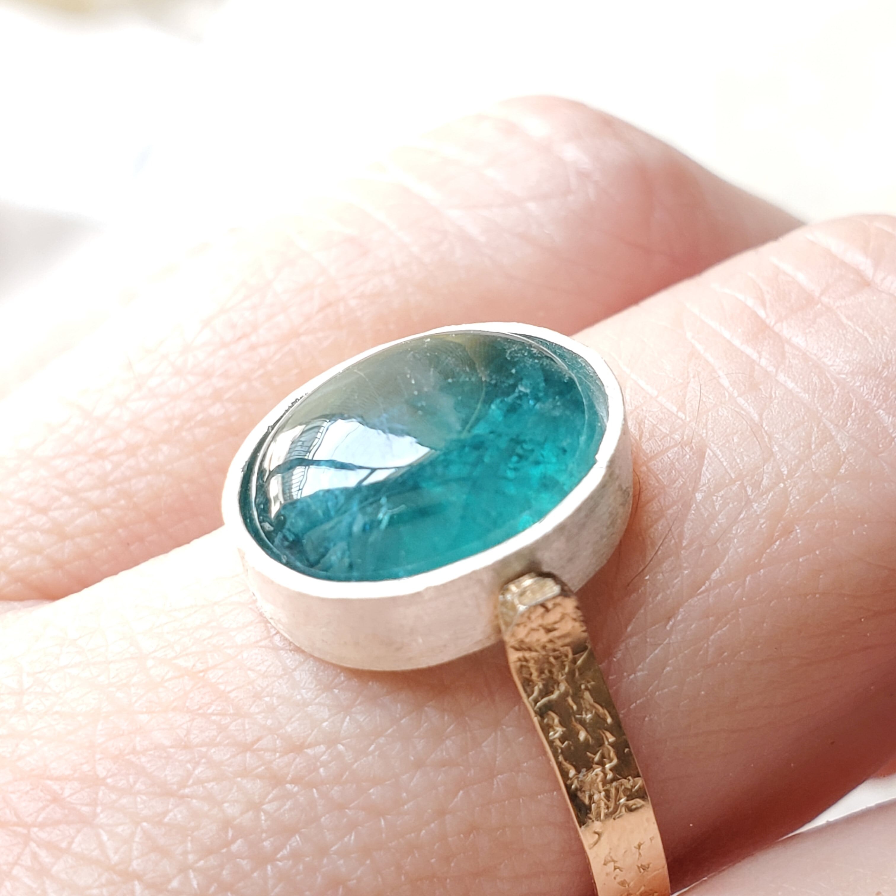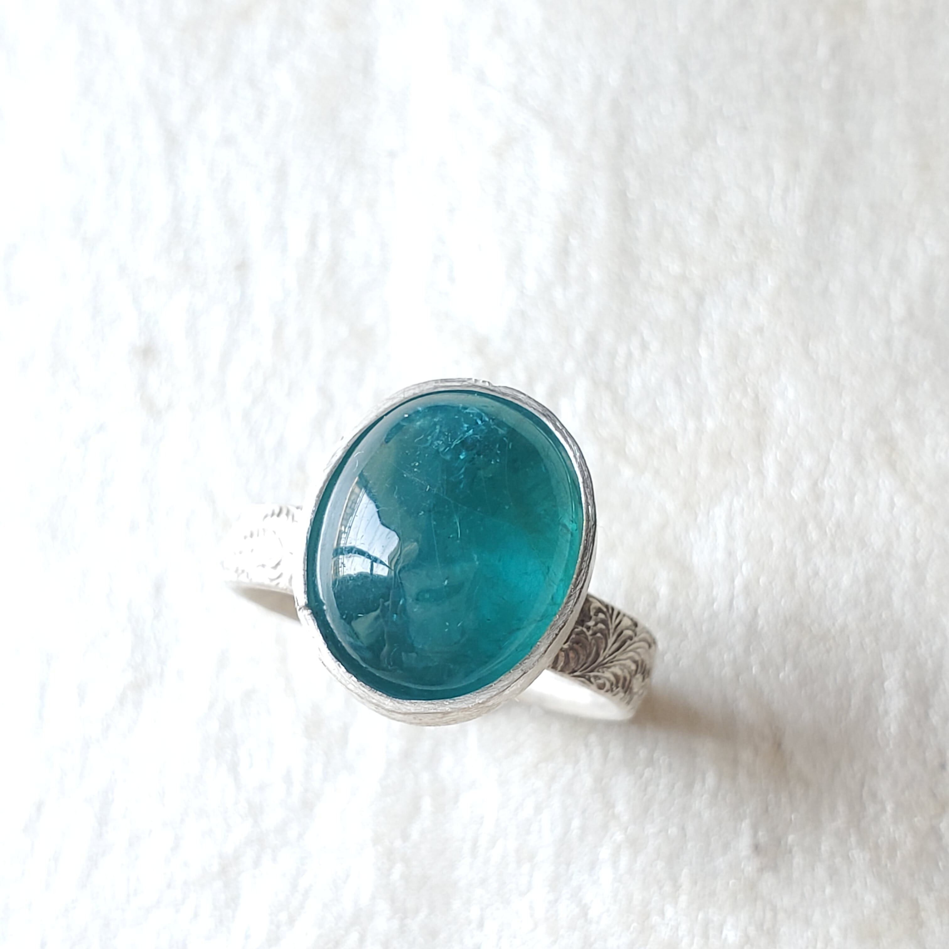 グランディディエライトの特徴は海のようなブルーグリーン。美しいだけではなくゆらぎや陰りをも感じさせる、独特の色合いが存分に楽しめます。