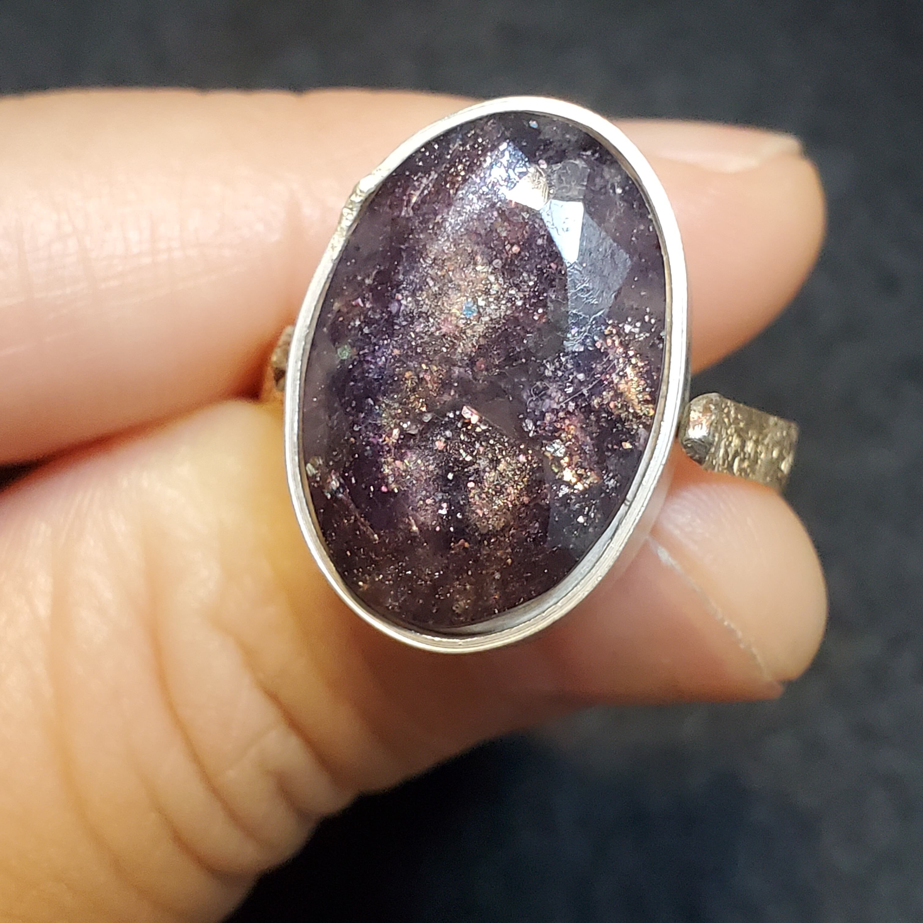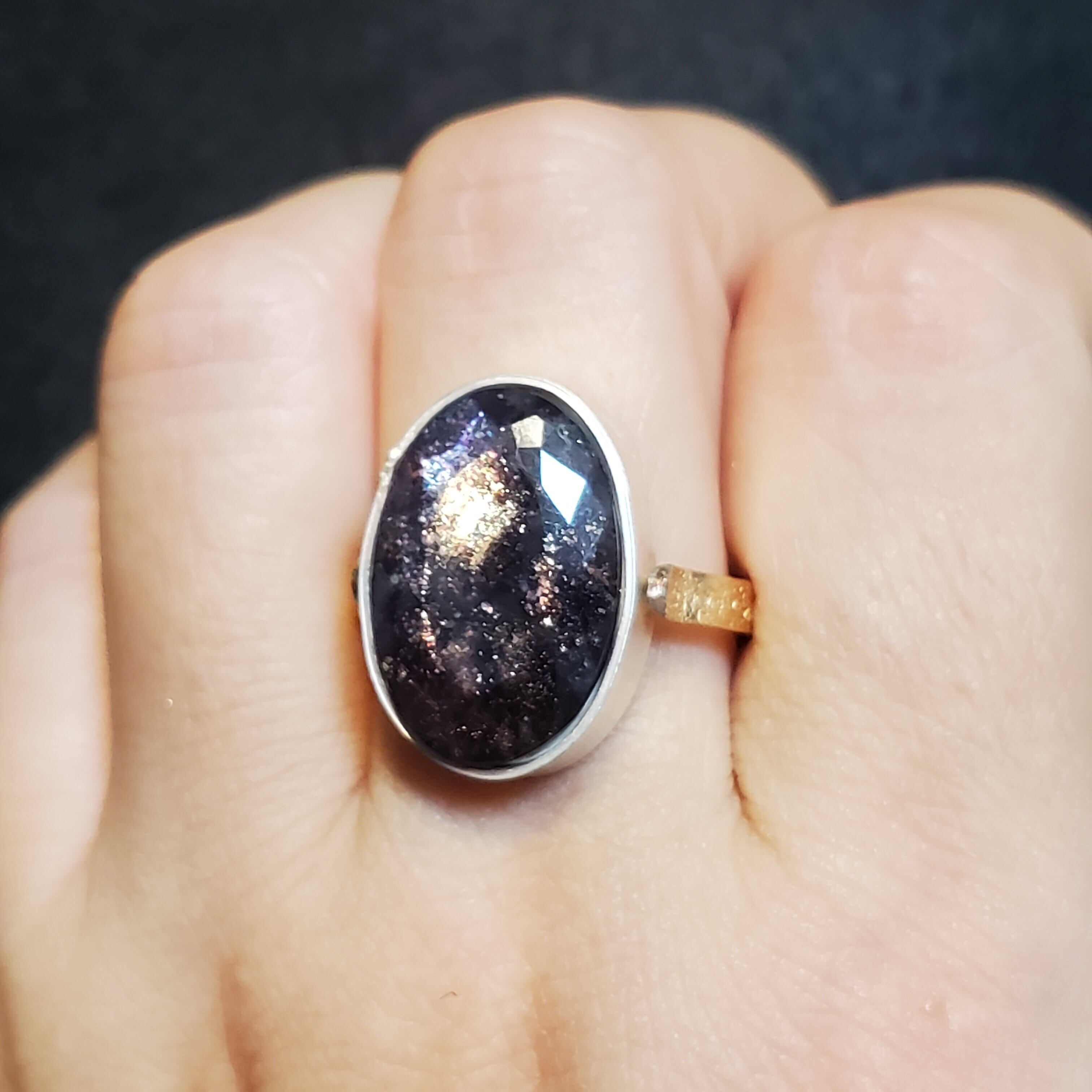 アイオライトサンストーンとはアイオライトの中に、光によってきらきらと輝くインクルージョンが入ったものです。