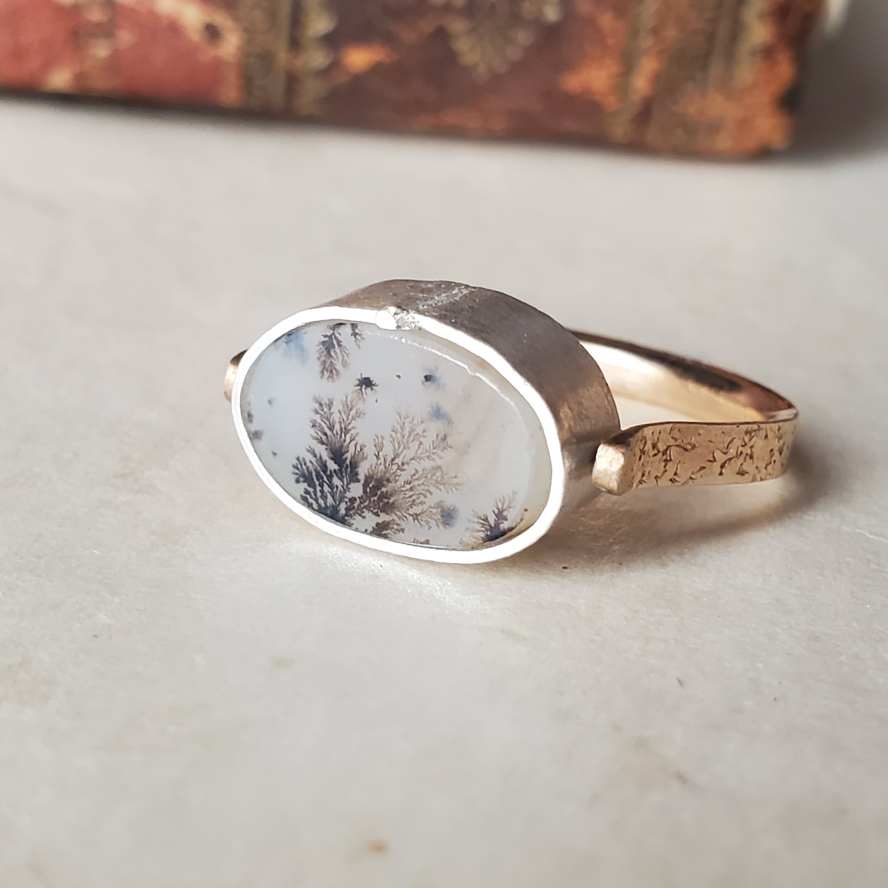 ●デンドリティックアゲートとは、アゲート(瑪瑙)の中に樹木状のインクルージョンが入ったものです。植物の化石のように思えますが、じつはこのインクルージョンは鉄やマンガンが結晶化したものになります。