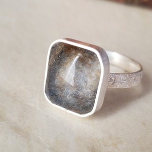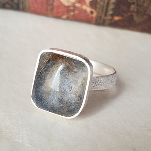 グレイッシュなカラーが変わり種のデュモルチェライトインクォーツです。