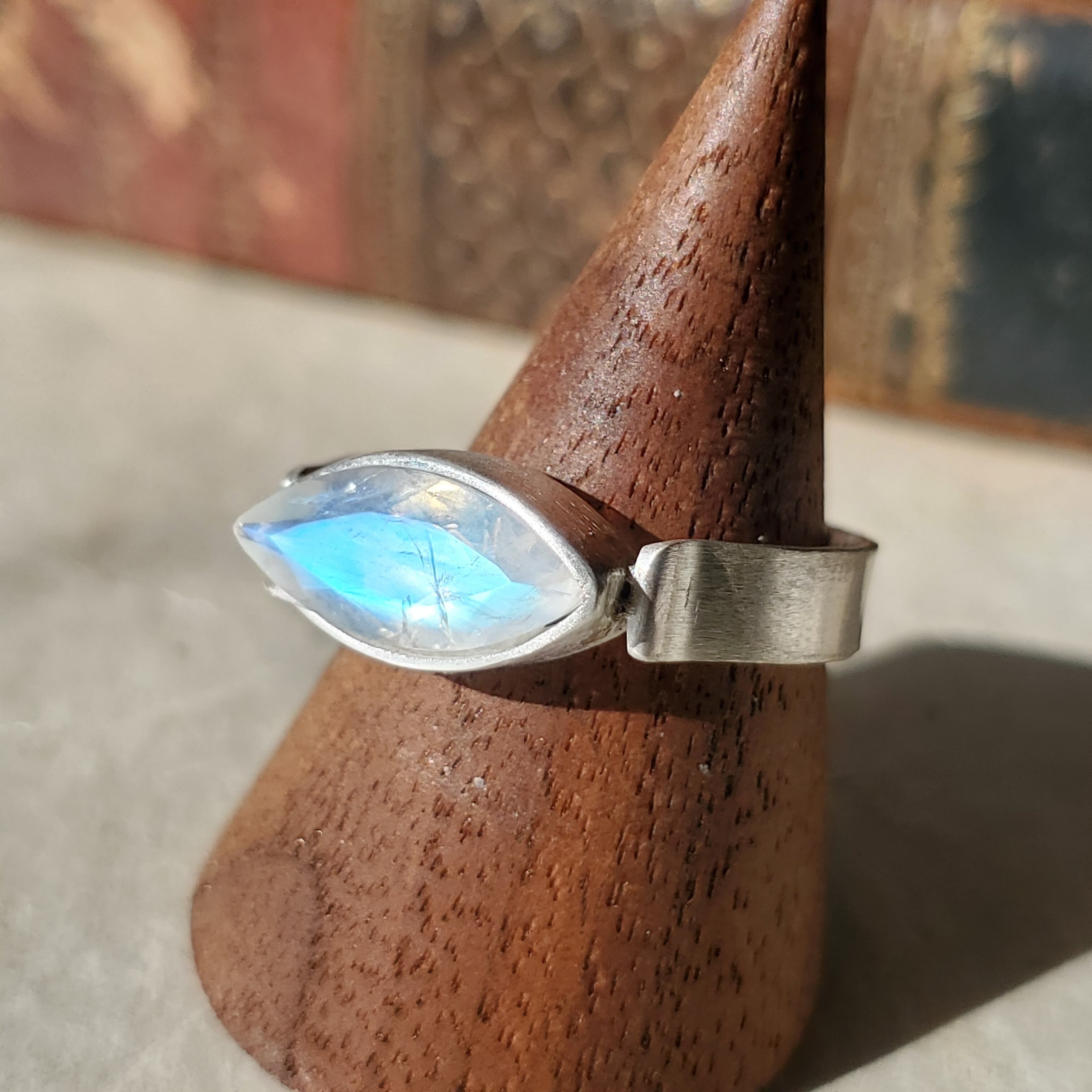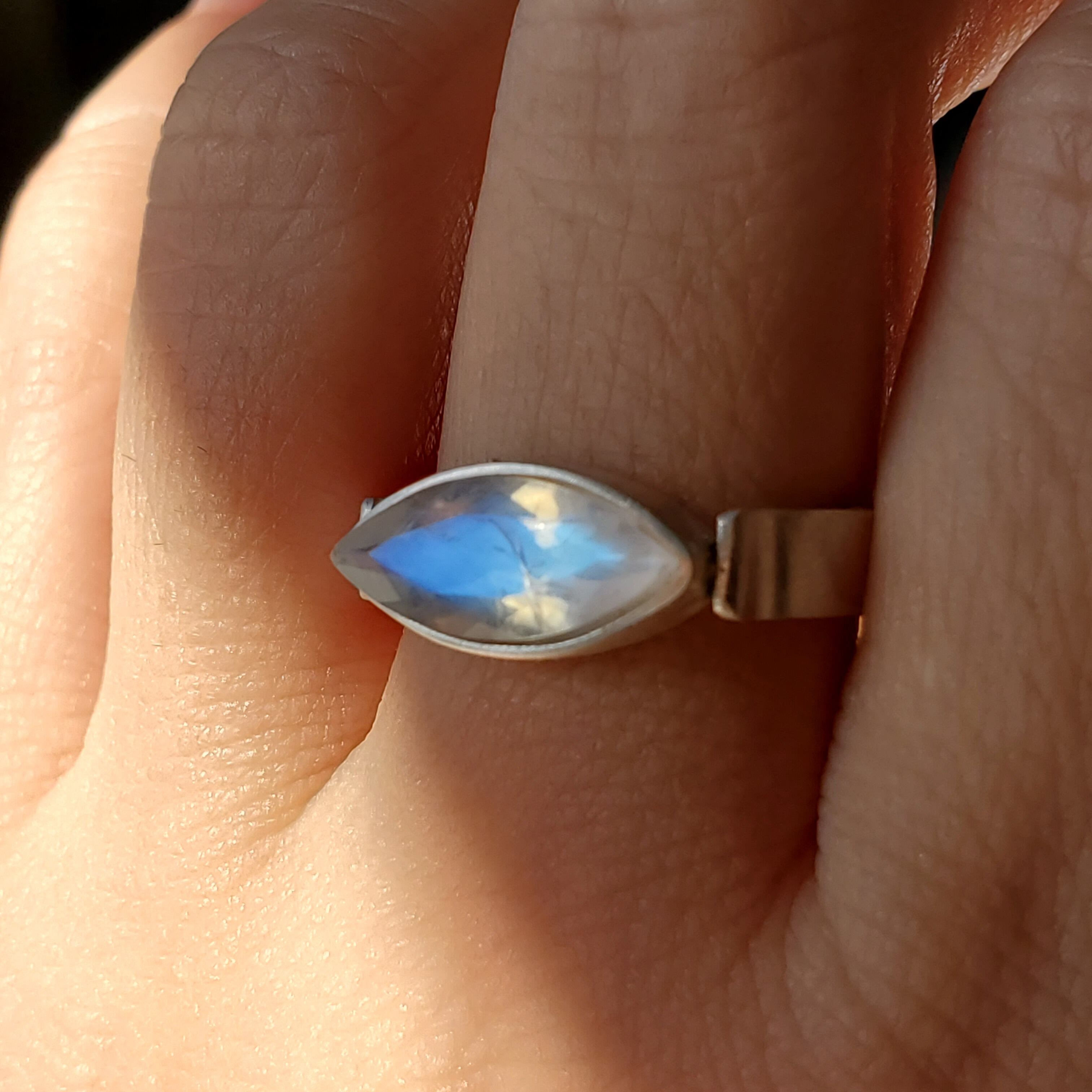 ●レインボームーンストーンは人気の石で、カボションやローズカット、ビーズの作品は多く出回っていますが、ファセットカットで覆輪留めのものは数がぐっと少なくなります。
