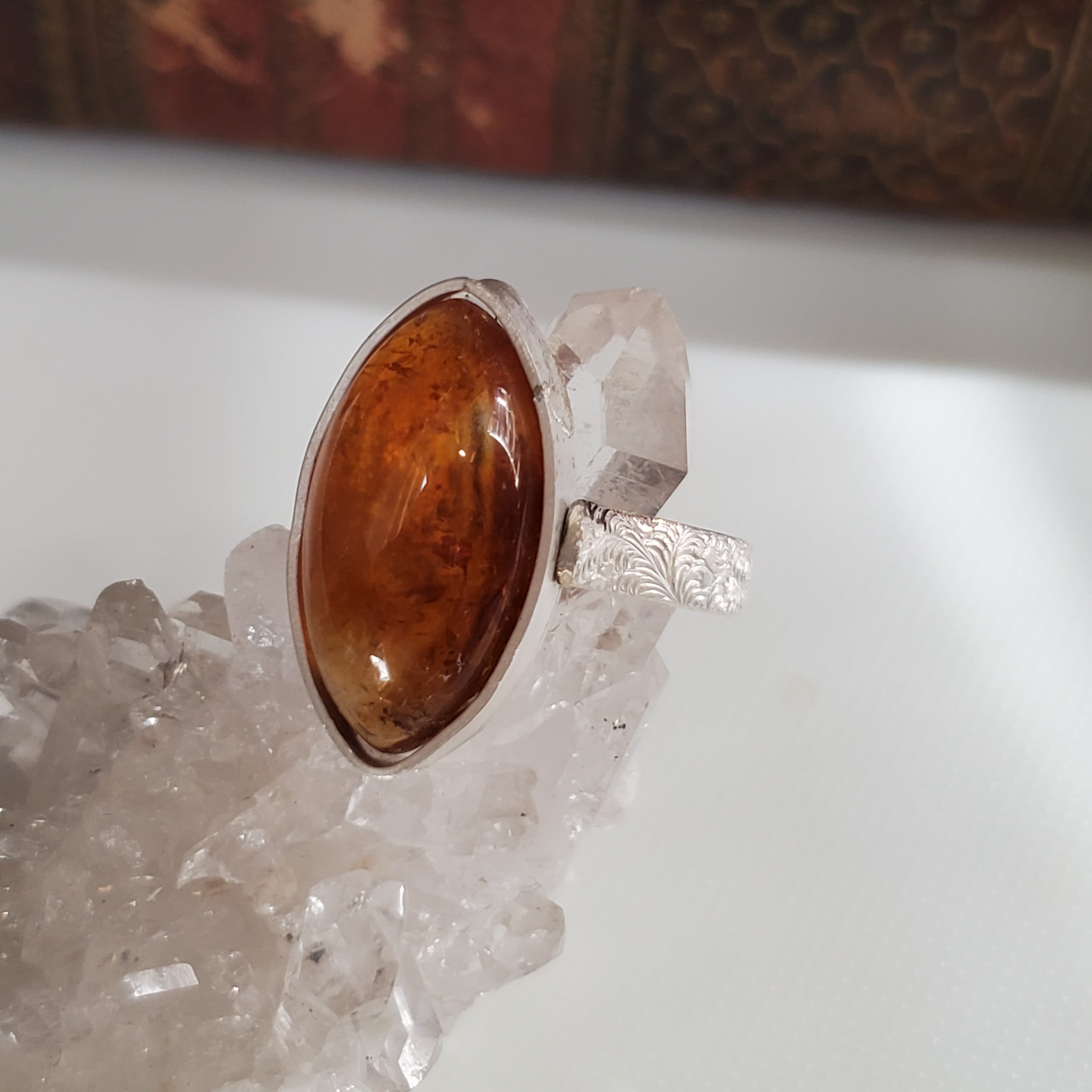ブランデー色のシトリンに、オレンジや透明な部分も混じった美しい色合いです。